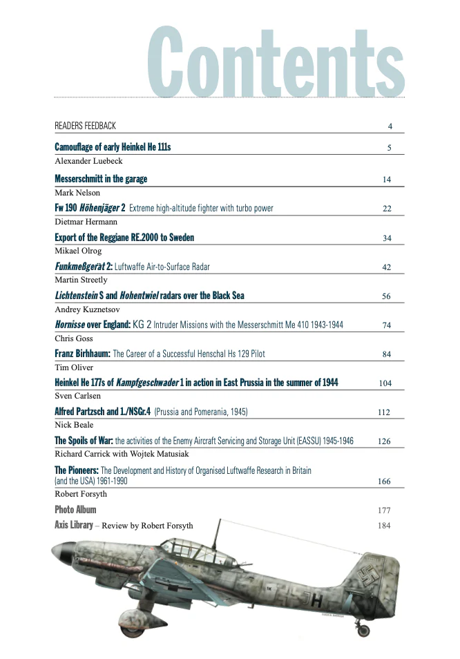Drawing on the talents of many well known names in the Luftwaffe research and writing community, each issue will be packed with stories, photographs and artwork. There are many fascinating pieces of information on the Axis air forces that are still unpublished, and are too short for a regular book but also too important to sit on a forgotten computer hard drive ad finitum. ‘Axis Wings’ aims to make these stories known, accompanied by specially commissioned artwork, and photographs from private collections. Each issue will be approximately 200 pages long, in softcover format. The success of this project very much depends on how well the concept is received, but as long as there is a demand we will keep going. Issues one and two have received glowing praise, and we are delighted with their positive reception.